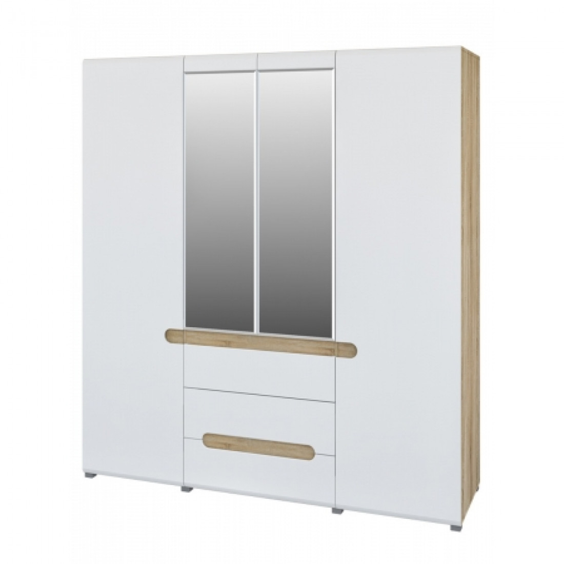 Четырехстворчатый шкаф для одежды и белья с зеркалом в спальню Леонардо МН-026-09