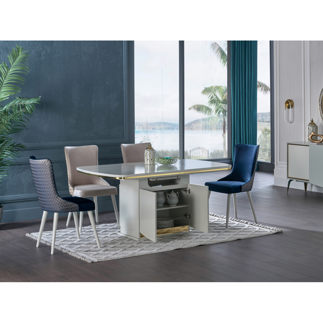 Обеденный стол Валеско можно использовать как в открытом, так и в закрытом положении