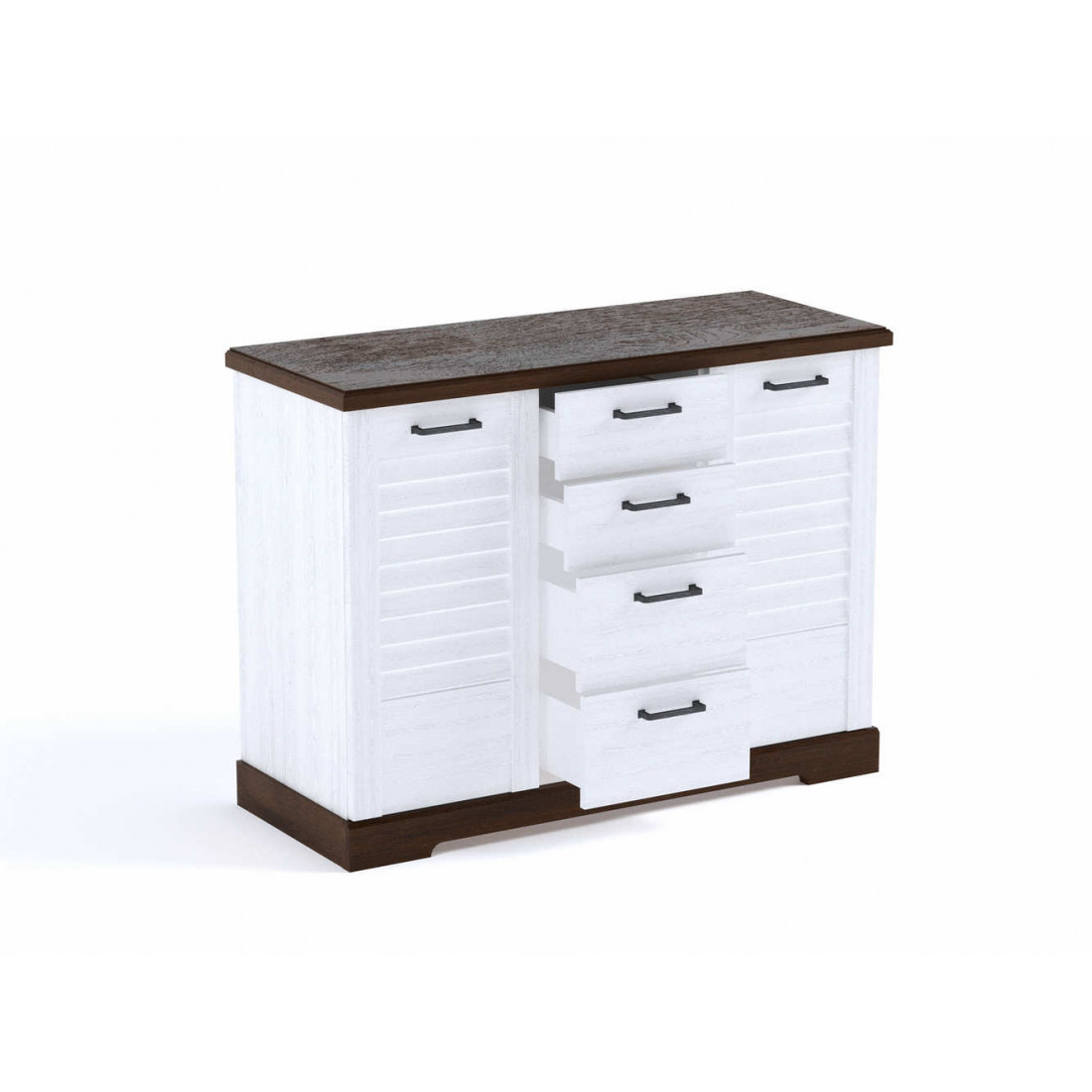 Комод Кантри является представителем коллекции «Кантри». Романтичный и спокойный внешний вид каждого элемента колеккции поможет сделать ваше жилое пространство по-настоящему уютным и изысканным. «Кантри» - это несколько вариантов расцветки, уникальный дизайн, разнообразие модульной системы и отсылки к натуральным материалам.