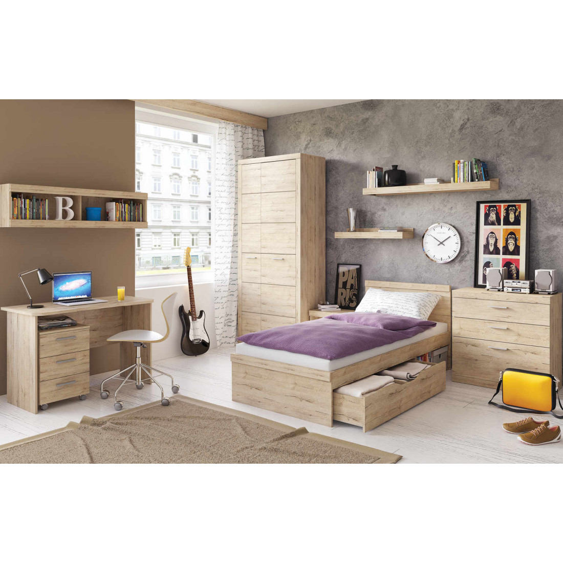 8. 4 варианта письменных столов: а) стол письменный 3SN (тумба только слева); б) стол письменный, к которому можно приобрести тумбу 3S; в) стол угловой L (или Р); г) стол угловой. Используя кровать 90, один из письменных столов и другие элементы из коллекции Оскар, можно организовать функциональное и удобное пространство для молодежной комнаты. Конструкция кровати 90 позволяет ящик для белья поместить как справа, так и слева.