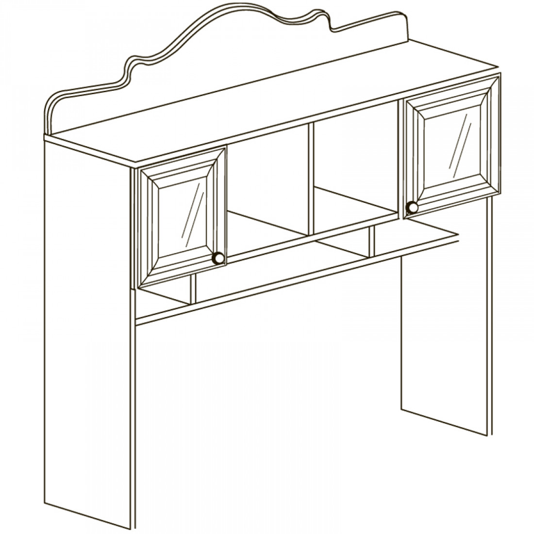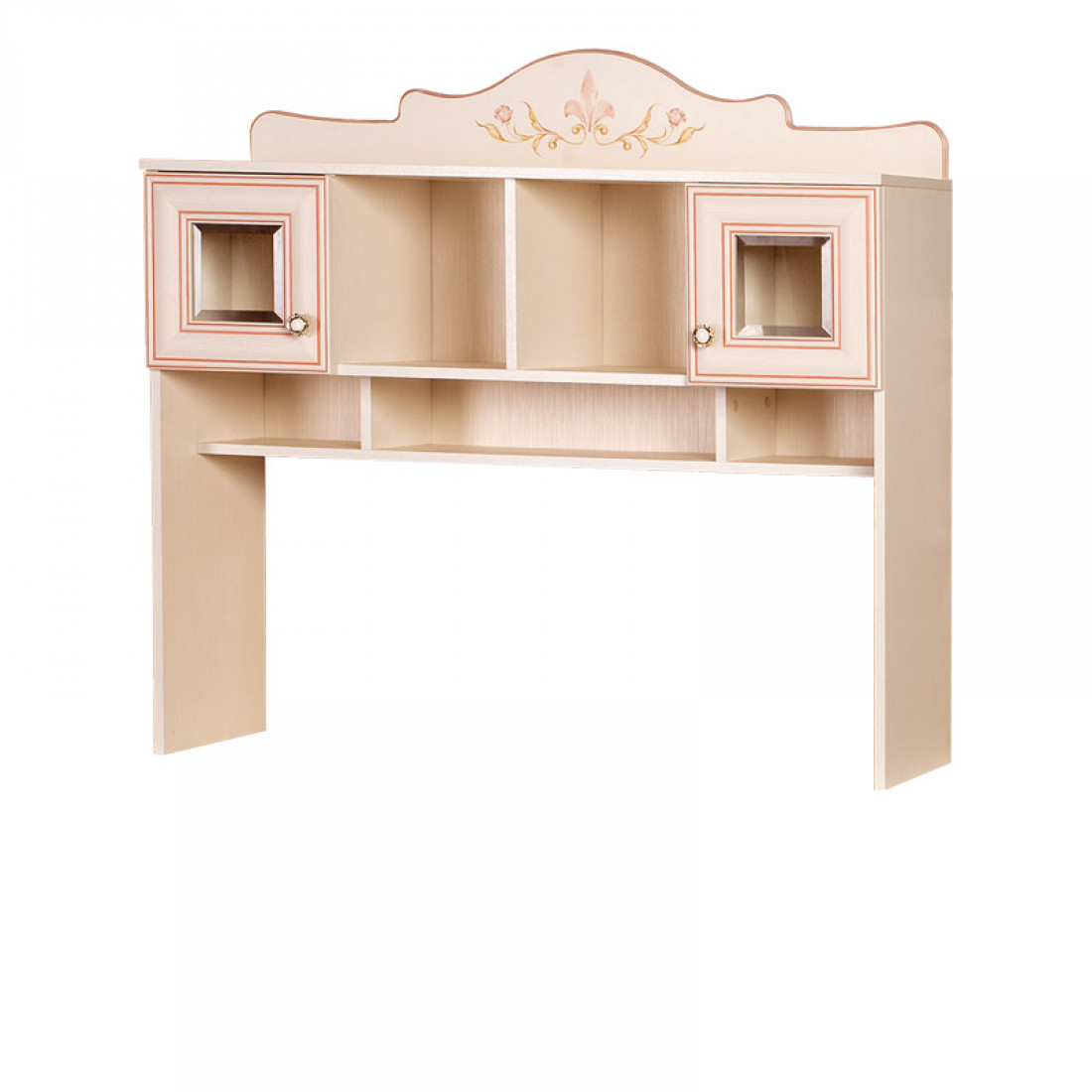 Фасады: МДФ, декор – кремовый белый, рисунок, патина, стекло с фацетом и рисунком