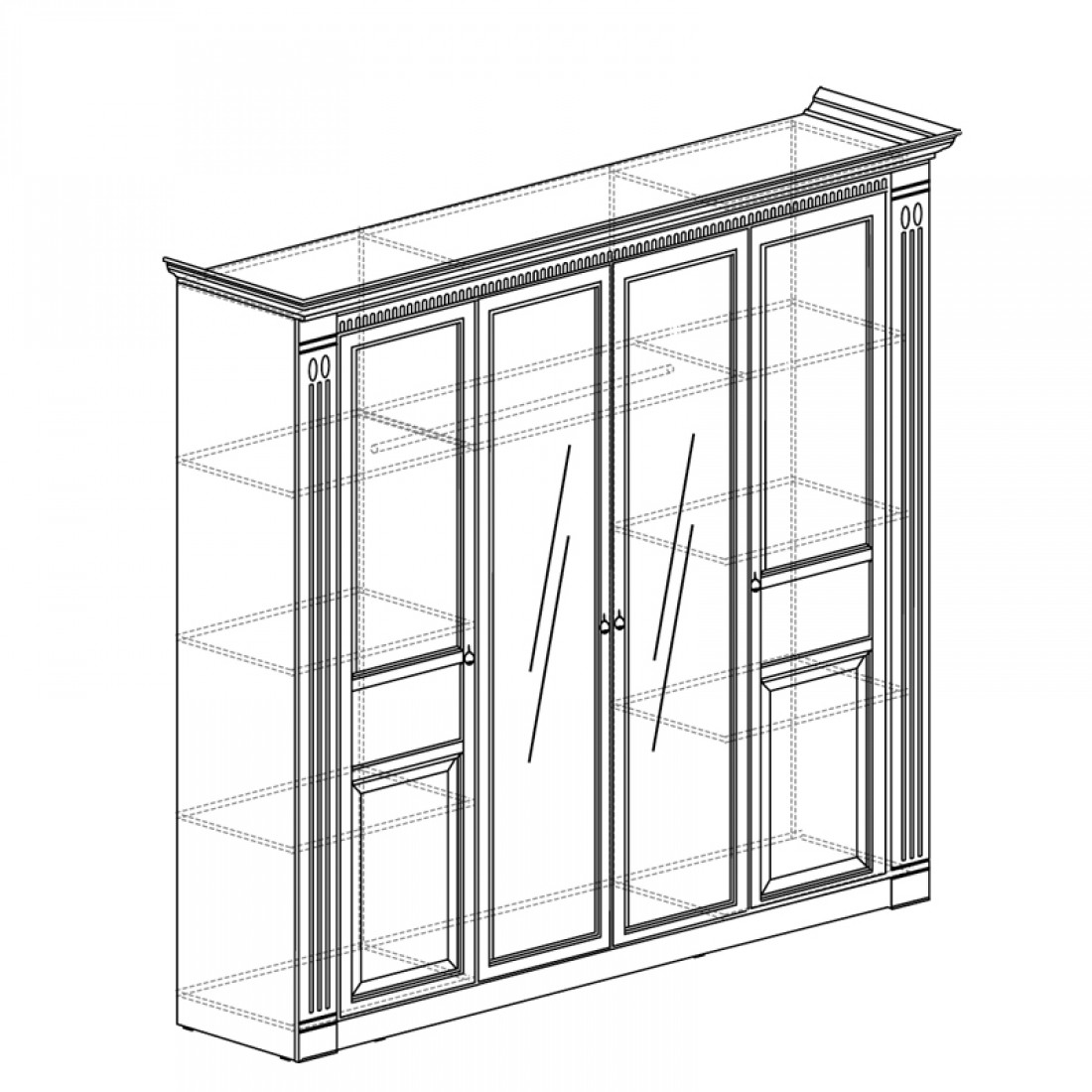 Фасады: МДФ, декор – дуб оксфорд, патина, зеркало с фацетом