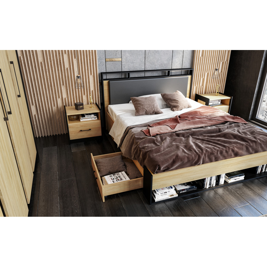 Коллекция Стенли - стильное сочетание двух цветов, матового чёрного с тёплым Дубом Прованс идеально подходит под современный интерьер, исполненный в различных цветовых решениях от интерьеров в стиле Лофт до современной классики. Отличительной чертой коллекции является тёмное обрамление боковин модулей, приподнятых над столешницей, которая отлично сочетается с тёмной линией по фасаду и цоколю. Благодаря тёмному фону, цвет Дуб Прованс контрастно выделяется, привнося в дом тепло и уют.